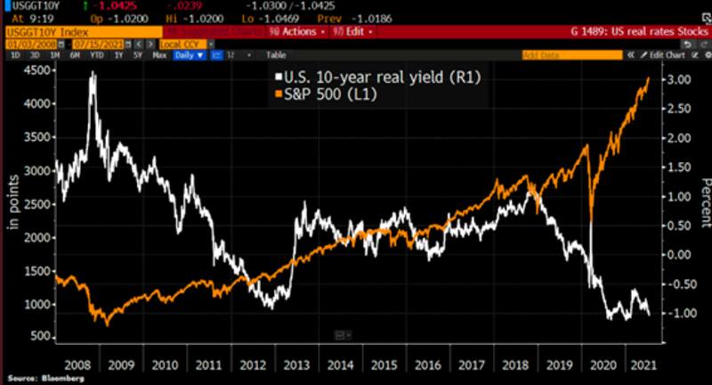 Queda claro que, por ejemplo, invirtiendo en bonos del tesoro americano, el rendimiento real es cercano al 1% negativo, lo cual alentó fuertemente a las acciones a seguir quebrando máximos de manera constante.