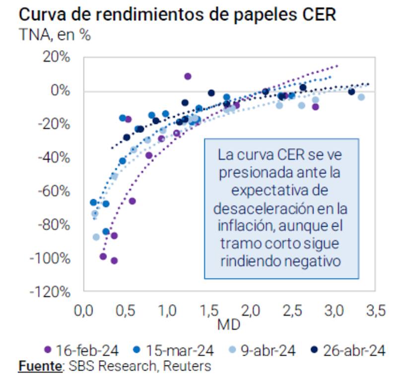 De esta manera, agregaron que los rendimientos de la curva CER (que en algunos casos volvieron a ser positivos) tienen espacio para comprimir.