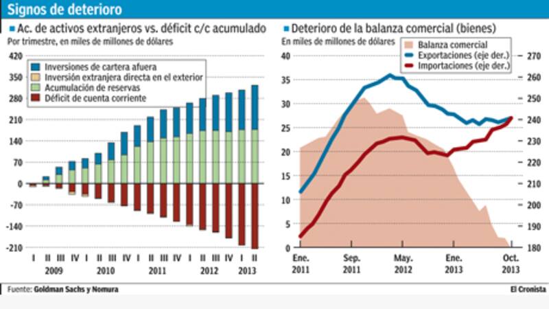 De hecho, los resultados de un récord en el déficit fiscal que empuja al gobierno de Dilma Rousseff a recortar gastos y resultados poco optimistas acerca del nivel de producción industrial - ambos datos se dieron a conocer la semana pasada -contribuyeron en apenas cinco días a que el real cayera 3% hasta las 2,2538 unidades por dólar, aunque la moneda todavía se mantiene 7,9% por encima del valor por el que fue puesto en práctica el programa de intervención cambiaria.
