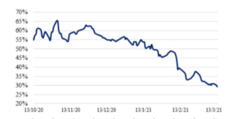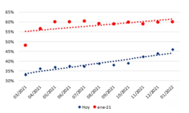 A comienzo de año el mercado esperaba una devaluación de entre el 55% y 60% mientras que hoy solo espera un ritmo devaluatorio de entre el 30% y 45%.