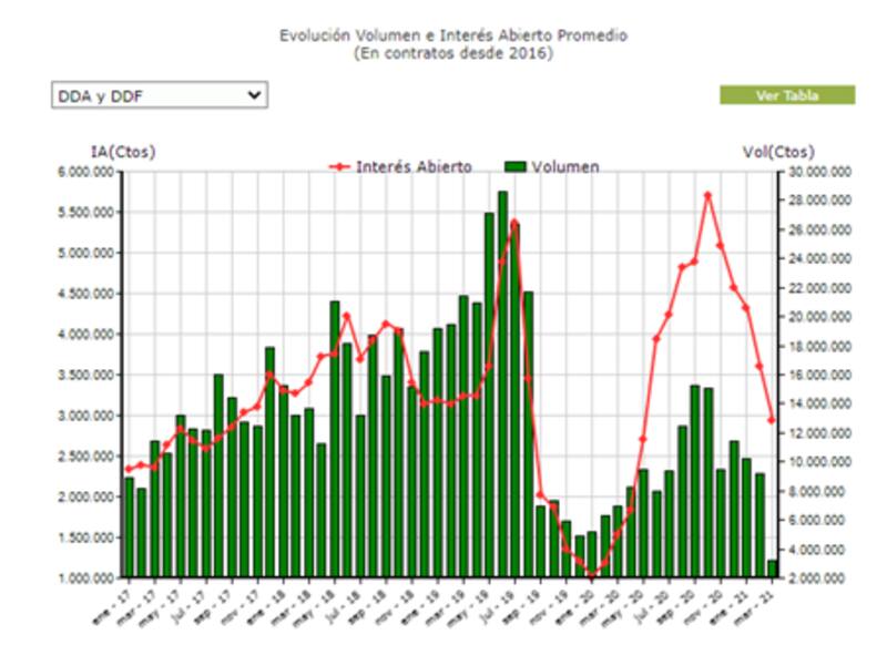 La cantidad de contratos abiertos en febrero fue más de 9,2 millones, generando un interés abierto menor a los u$s 3000 millones, lo cual habla de un interés menor por parte de los inversores de indexarse contra la devaluación del tipo de cambio oficial.