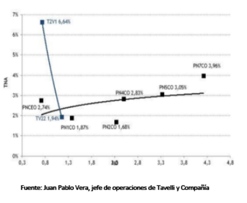 Fiorito.Por otro lado, el especialista aclara que en inversiones a mediano plazo, la preferencia se invierte a favor de los bonos dólar linked. "En un trade de mediano plazo, vemos que la curva dólar linked larga más tiene valor respecto de la curva CER. El desplazamiento al alza de los rendimientos de los bonos dólar linked comienza a pensionarlos en un nivel atractivo. La curva invertida señala que el BCRA va a seguir planchado al dólar pero que tarde o temprano, algún ajuste cambiario va a tener que ocurrir ya que aun la inflación sigue corriendo a niveles muy altos y la apreciación real del tipo de cambio podría empujar a un ajuste del tipo de cambio. En ese sentido, el TV22 es el bono mas liquido y tiene mas atractivo respecto del CER", dijo el fund Manager de Schroders.Naturalmente, las menores expectativas de devaluación tienen un impacto directo en la dinámica de la deuda dólar linked, la cual evidencia fuertes contracciones en las últimas semanas, sobre todo desde que Guzmán comenzó a insistir en que la devaluación de 2021 será del 25% solamente.