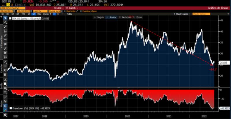 El índice de compañías mineras cae 42% desde sus máximos históricos.