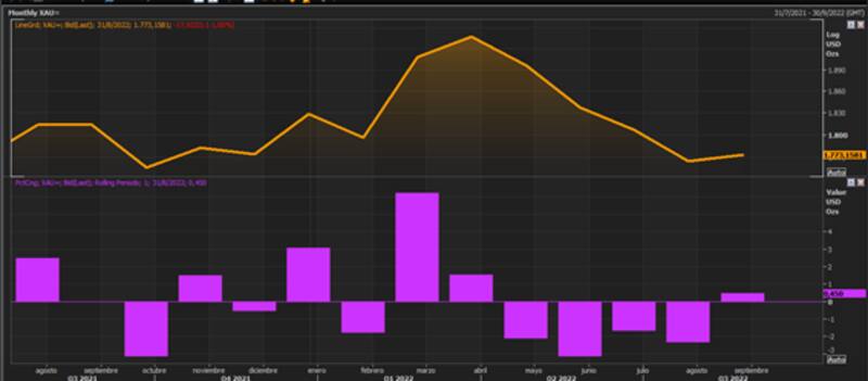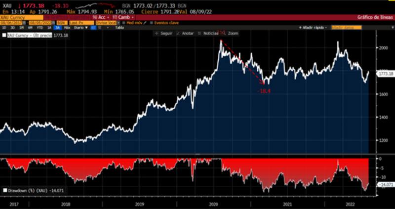Además, históricamente el oro funcionó como cobertura inflacionaria y se espera que ese beneficio pueda ser restablecido en el mercado ya que por ahora no ha reaccionado positivamente al actual contexto de alta inflación.