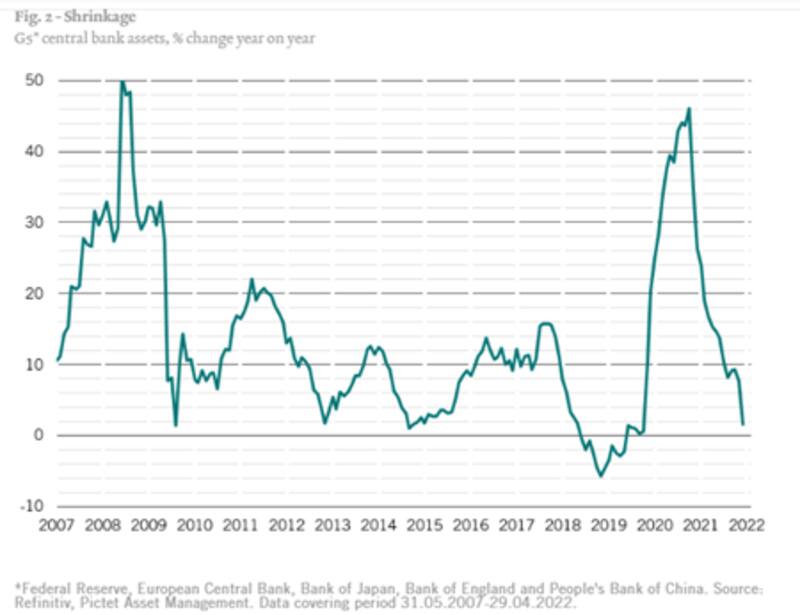 De hecho, el nivel de compras de activos por parte de los bancos centrales del G5 colapsó a niveles cercanos a cero desde mediados del segundo semestre del año pasado hasta la actualidad.