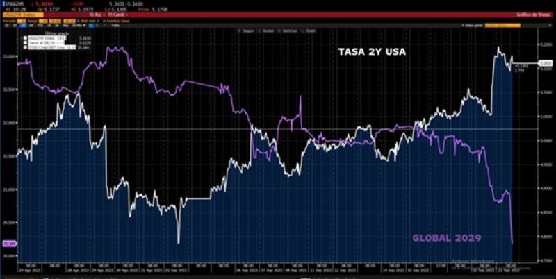 Desde los máximos alcanzados antes de las PASO, el Global 2029 cae 13,5%, mientras que el Global 2030 baja 13%.