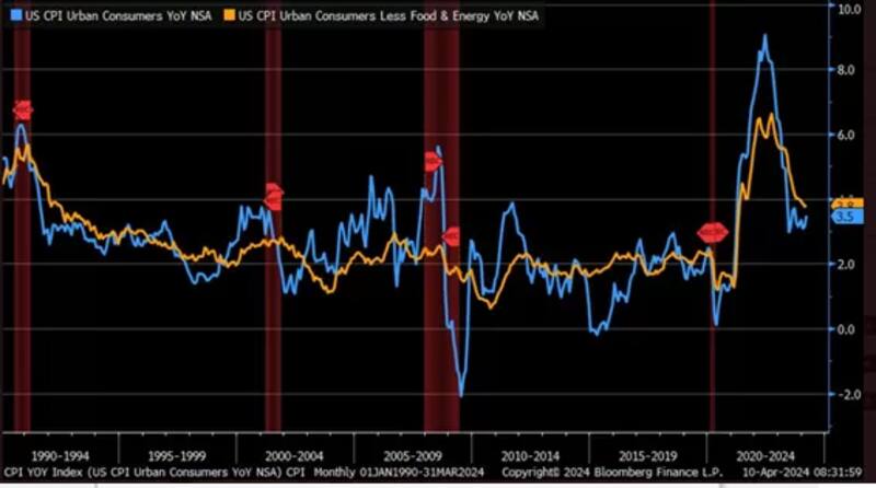 Ayer se supo que el IPC de marzo en EEUU aumentó un 0,4% en el mes, lo que sitúa la tasa de inflación de 12 meses en un 3,5%, o 0,3 puntos porcentuales más que en febrero.