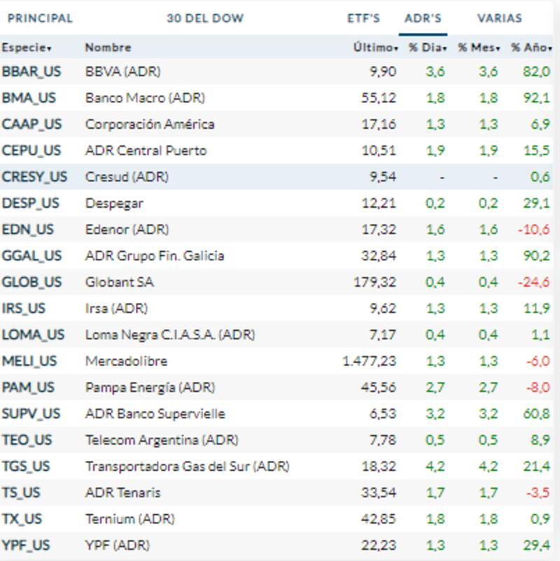La tranquilidad que llevaron esas palabras de Powell a los mercados se hicieron extensivas a los ADR de empresas argentinas, que de haber cotizado durante la rueda todas en negativo, pasaron a verde con alzas de hasta 4 por ciento.