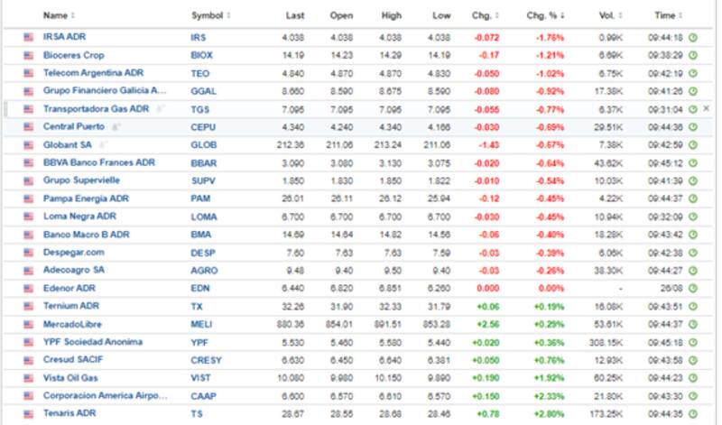 Por su parte, las acciones argentinas en Wall Street inician la semana mayormente en negativo.