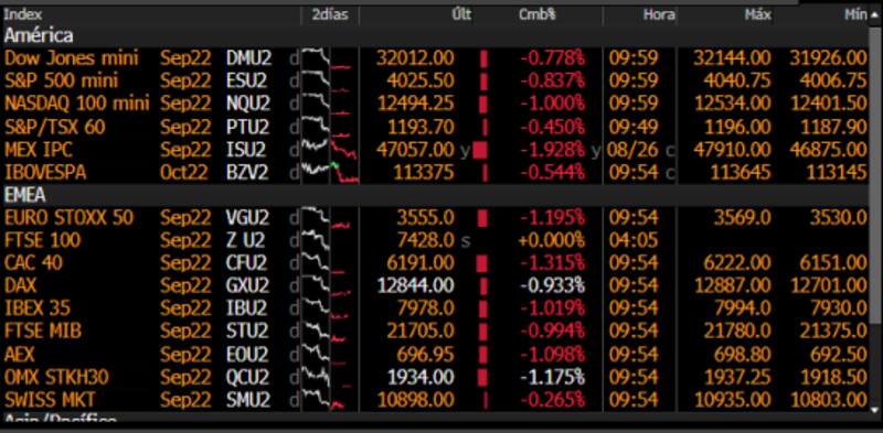 Las acciones americanas muestran pérdidas de 23% en el caso del Nasdaq en lo que va del año, seguido por S&P500 que baja 15% y el Dow Jones pierde 11,7 por ciento.