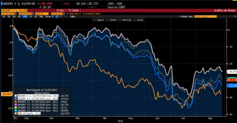 Luego de los comentarios de Jerome Powell el viernes pasado en Jackson Hole, el contexto para la deuda luce desafiante para la deuda emergente en general y para la argentina en particular.