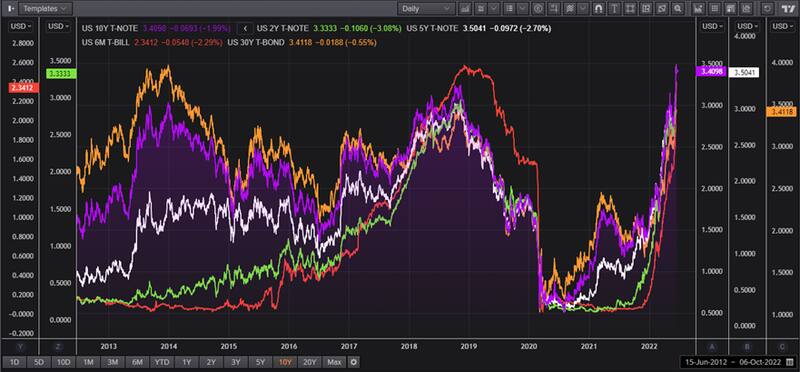 Esto es lo que se estuvo observando en los últimos meses, con una disparada abrupta en las tasas de interés de los bonos del Tesoro, que alcanzaron máximos desde 2018 en el tramo corto y máximos desde 2014 en el extremo más largo.