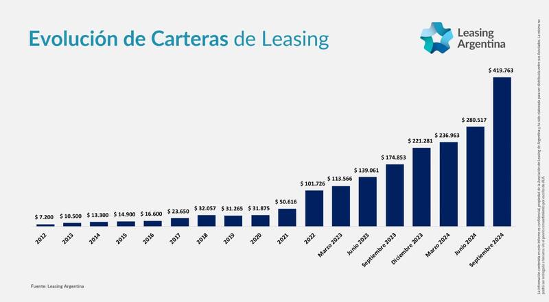 Leasing Argentina afirmó que esta recuperación del sector "la economía recobra una herramienta de financiamiento de mayor plazo" y destacó que el financiamiento a través de esta vía registró una mora del 0,65% promedio, inferior a la del sistema financiero, que se ubicó en 1,6% a finales de agosto pasado.