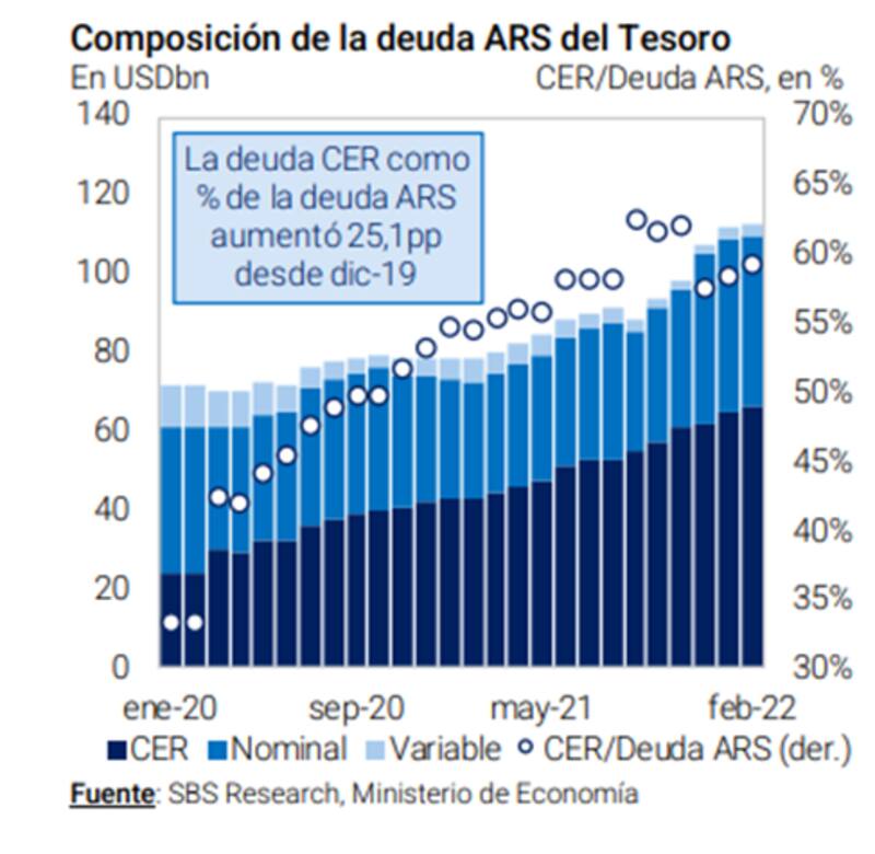 Considerando los últimos datos oficiales de febrero, desde fines de 2019 pasó de ser el 8% a representar el 18%. Además, mientras que hace poco más de 2 años daba cuenta del 34% de los compromisos en moneda local, hoy esa importancia relativa avanzó hasta 59%", confirmó Persichini.