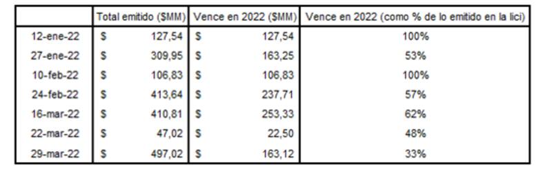 En definitiva, en total se emitieron $ 1912 millones de los cuales, $ 1074 millones vencen en 2022, es decir, el 56%.