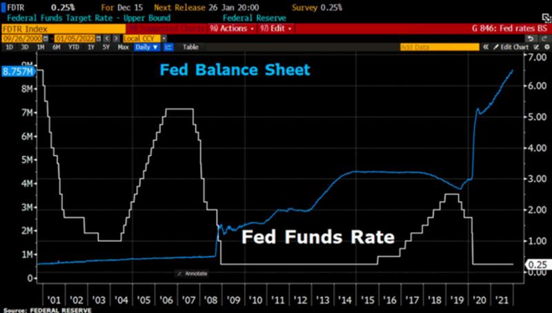 Entre marzo de 2020 y la actualidad, la Fed compró bonos del Tesoro americano y activos respaldados por hipotecas a un ritmo récord, pasando de u$s 3,9 billones a los u$s 8,7 billones actuales.