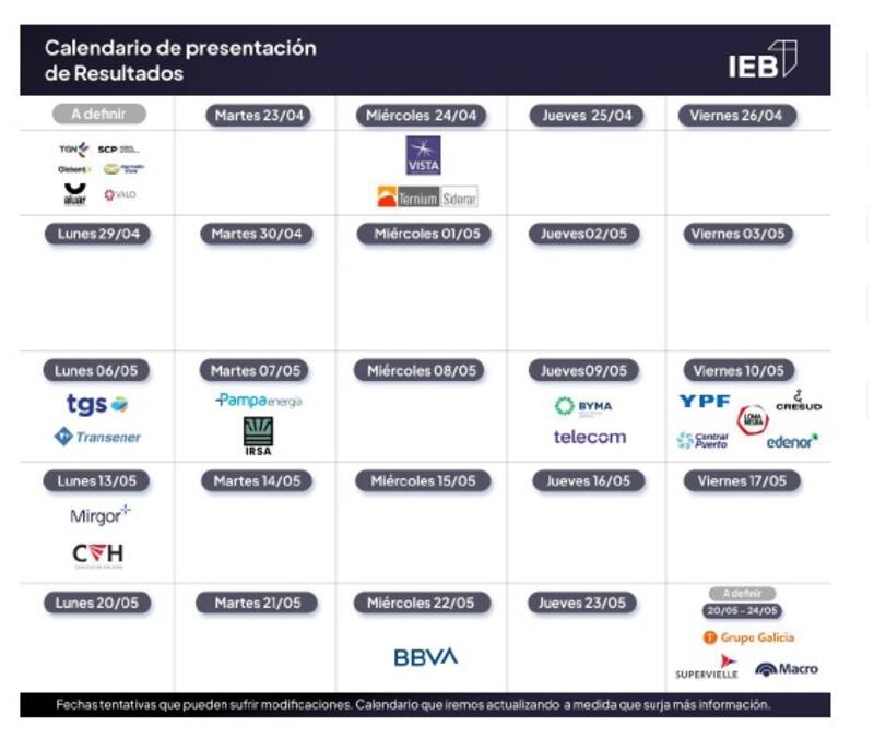 A su vez, en la primera semana de mayo fueron protagonistas los resultados de TGS, Transener, Pampa, IRSA, BYMA, YPF, Central Puerto, Loma Negra, Cresud y Edenor.