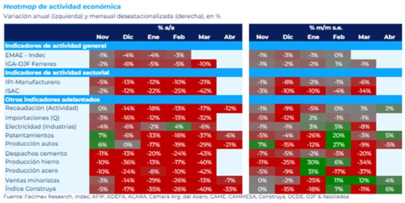 "Hay 61 de 68 ramas industriales (90%) que mostraron caídas, cifra que supera a abril de 2020 (57 ramas o el 84%). Lo positivo es que las primeras señales de abril muestran algunos brotes verdes con algunos índices sectoriales mostrando rebotes mensuales", indicaron.