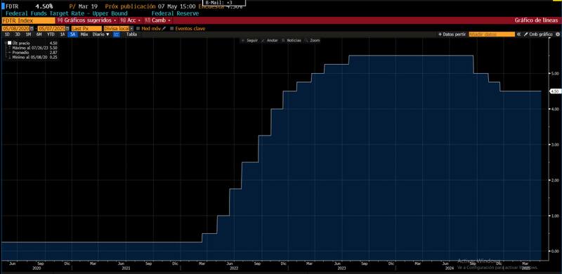El mercado espera con 96% de probabilidad que la entidad monetaria no realice cambios en la tasa y que deje inalterada la misma en el actual rango de 4,25% y 4,5%.