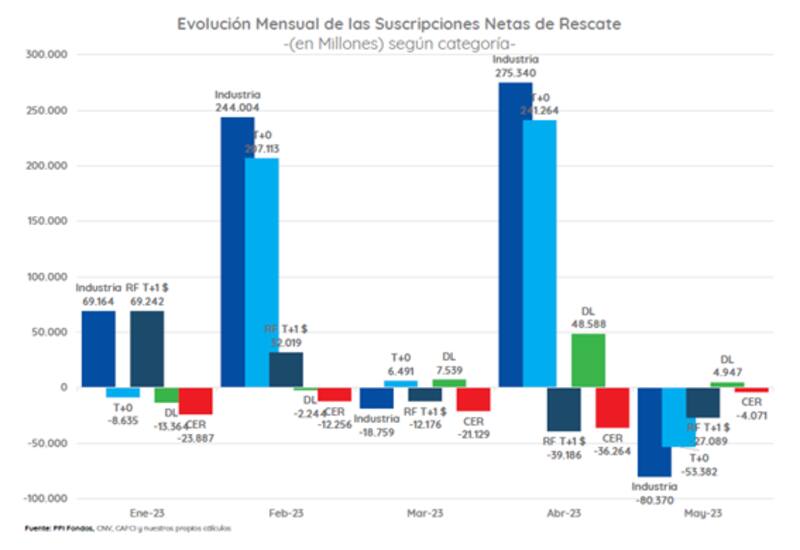 Por lo tanto, la mayor intensidad en las variables financieras terminó impactando en los flujos dentro de la industria de fondos comunes de inversión.