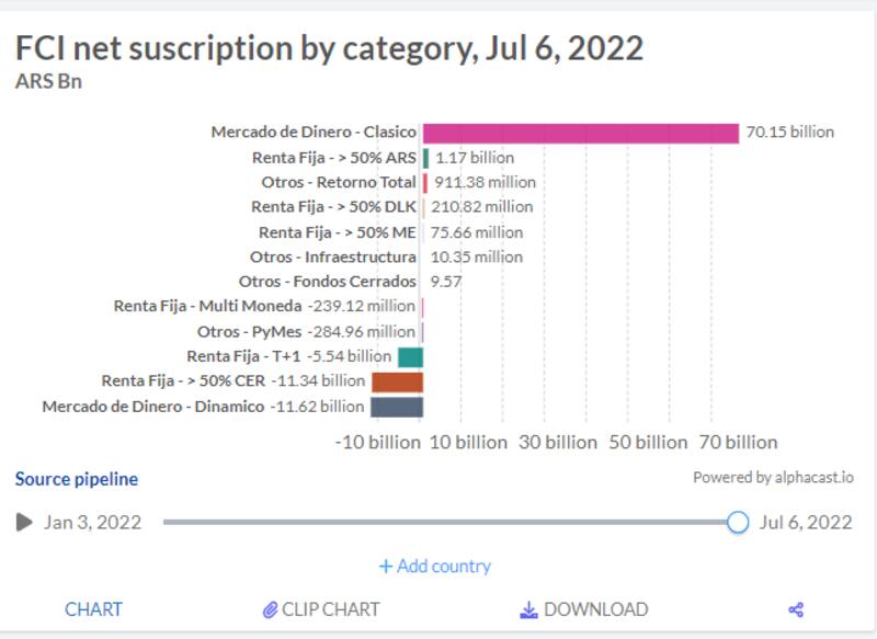 A la vez, en el mismo período, los pesos se redirigieron hacia los T+0 que sumaron $ 230.884 millones y el restante $ 144.087 se fueron de la industria de fondos comunes de inversión.