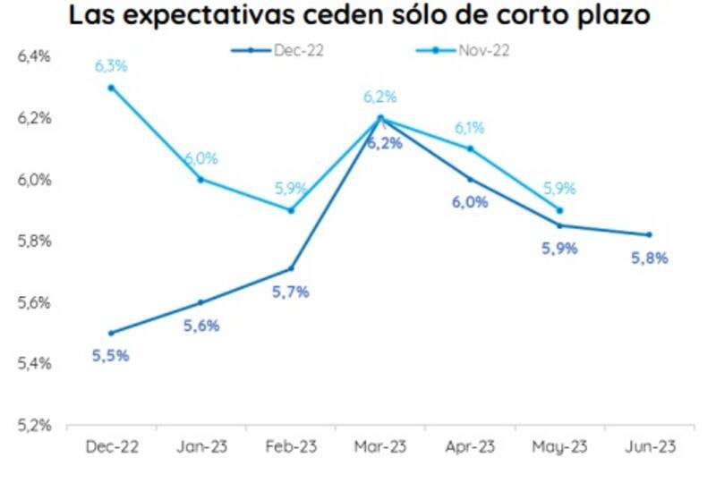 "Las expectativas cedieron muy en el margen tras la sorpresa inflacionaria de noviembre. Si bien la inflación esperada promedio para diciembre-marzo bajó de 6,1% a 5,6%, la de marzo-mayo se mantuvo prácticamente sin cambios en 6%", detallaron desde Porfolio Personal Inversiones (PPI).