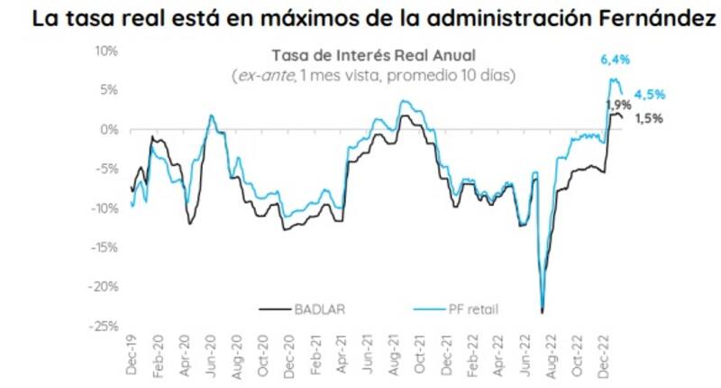 La tasa de interés real anual de los plazos fijos está en niveles máximos de la administración de Alberto Fernández, debido a que la inflación en los últimos meses estuvo por debajo del rendimiento de los depósitos a plazo tradicionales. Sin embargo, advierten que podrían tornarse nuevamente negativas en los próximos meses.