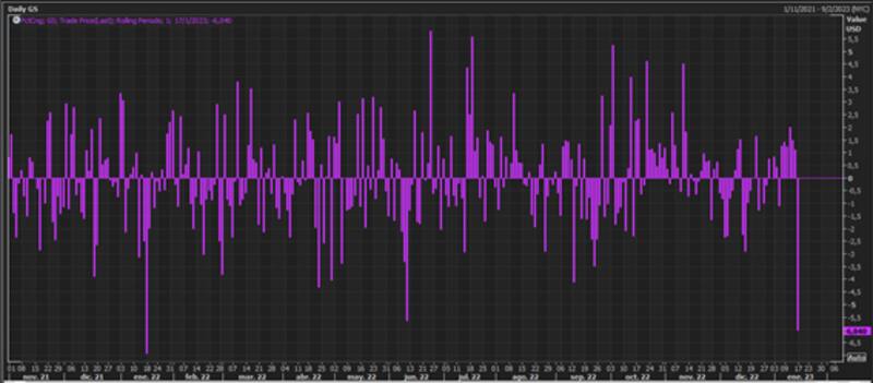 Esto es debido a los impactos de la suba de tasas de la Fed sobre la macro americana, provocando un escenario de mayores riesgos recesivos y de una economía con menor crecimiento esperado.