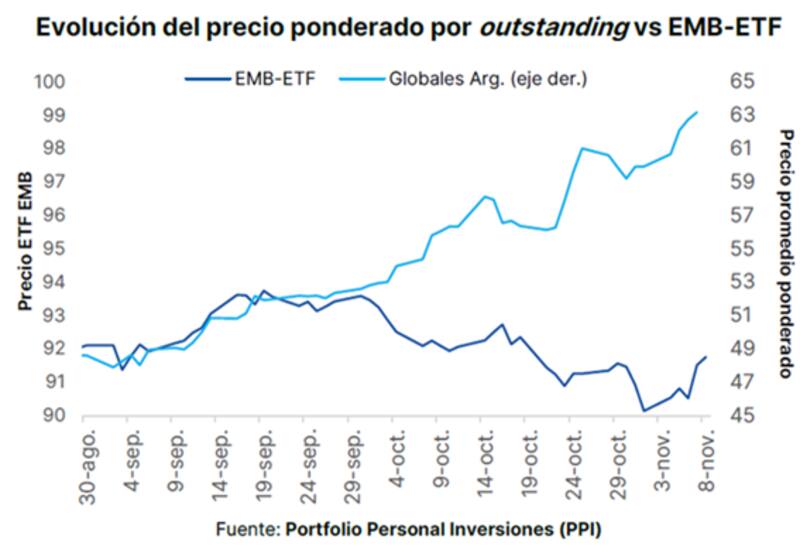 Los analistas de Research Mariva agregaron que, a pesar del viento en contra externo que ha comenzado a afectar a los mercados emergentes debido a la incertidumbre ante las elecciones del 5 de noviembre en Estados Unidos, los buenos fundamentos económicos a nivel local están dando soporte a los precios de los bonos soberanos.