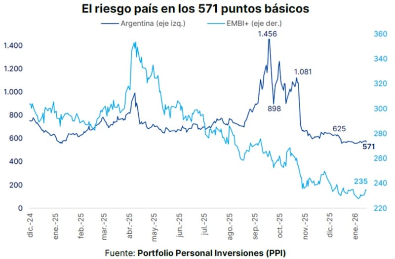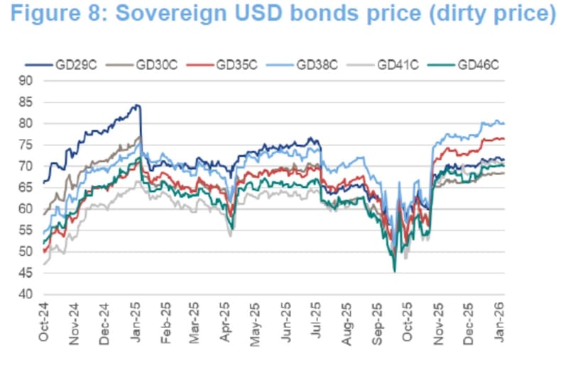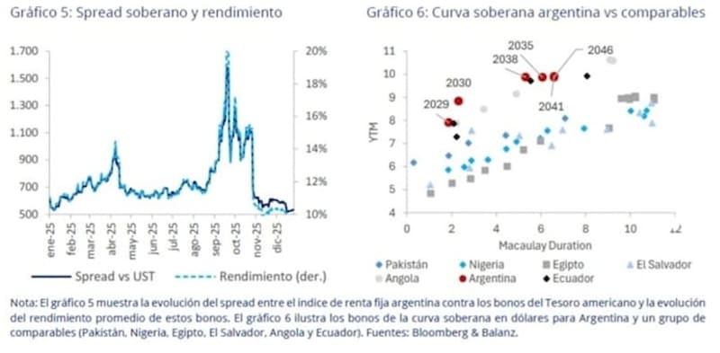 “En este contexto, vemos espacio adicional para la compresión del riesgo país a medida que se realicen compras de reservas, se apruebe la reforma laboral en el Congreso (después de la reciente aprobación del presupuesto 2026), y se fortalezca el proceso de estabilización de la inflación”, detallaron.