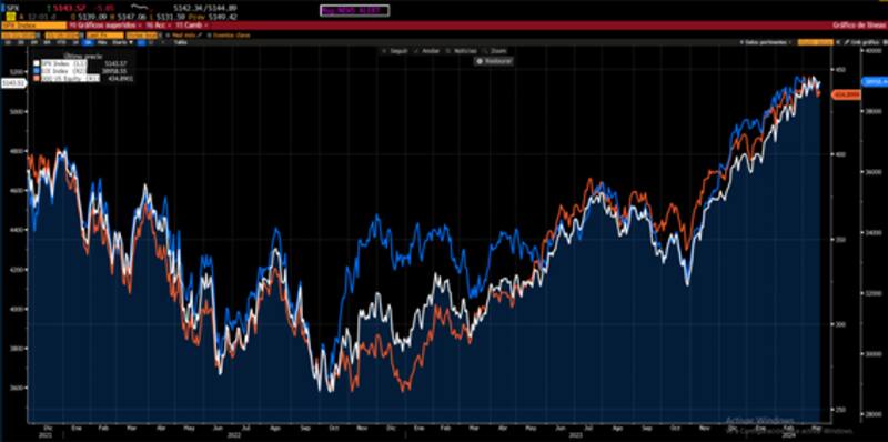 "Con una inflación persistente que trae mayor nominalidad, esto puede impulsar el precio nominal de las acciones, y le permita a la FED iniciar recortes de tasas con una inflación ligeramente superior a su objetivo del 2%. Esto beneficia a aquellas acciones cuyos flujos de caja se esperan a largo plazo, especialmente las tecnológicas de gran capitalización y crecimiento de gran capitalización", detalló.
