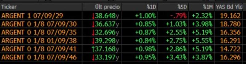 Distinto fue el escenario para la renta fija local. Los bonos soberanos en dólares emitidos bajo ley extranjera avanzaron un 0,9% en promedio a lo largo de toda la curva.