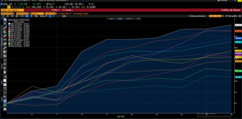 Las mayores subas se dieron en Grupo Supervielle, BBVA Argentina, Grupo Financiero Galicia y Banco Macro, con avances de entre 29% y 35% desde el "lunes negro" hasta la fecha.