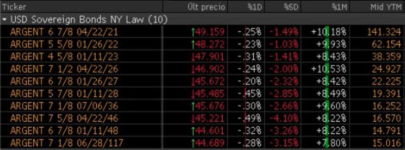 Ligeras correcciones de los bonos ley extranjera. Fuente: Bloomberg.