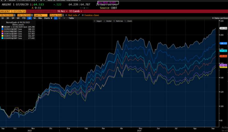 "Los precios de los bonos soberanos argentinos han aumentado siete dólares desde principios de agosto, y consideramos que el driver detrás de esto fue mayormente externo, ya que se evidenció un comportamiento similar en soberanos comparables, sin haber demasiado driver a nivel local", dijeron.