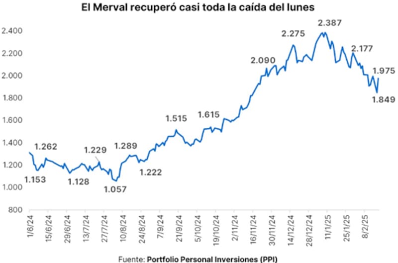El mercado se recupera de la volatilidad sufrida por el caso LIBRA. A comienzo de la semana el mercado cayó casi 7%, con el S&P Merval alcanzando los u$s 1.849.