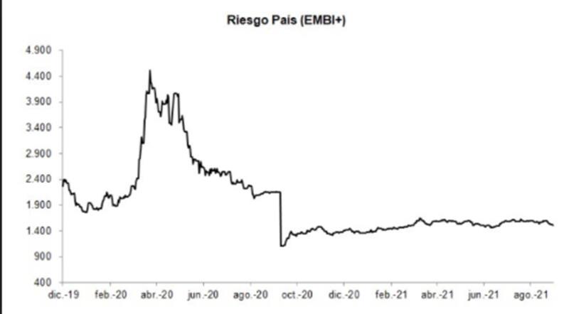 El riesgo país cerró en 1509 puntos básicos al cierre de ayer, cayendo 21 puntos básicos respecto al día anterior y 95 puntos en las últimas siete jornadas.