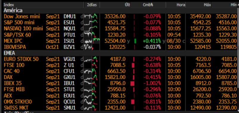 En el plano global, las acciones muestran ciertas bajas. El Dow Jones retrocede 0,07%, al igual que el S&P 500. El Nasdaq, en tanto, cede 0,08%.