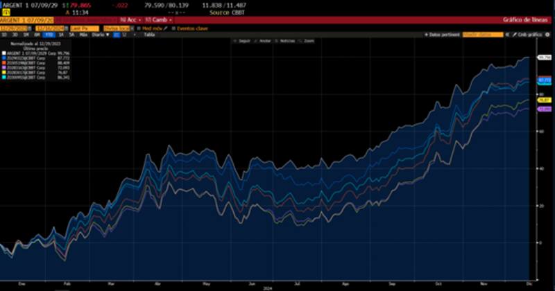 Los analistas de Delphos Investments agregaron que los bonos soberanos hard-dollar muestran un desempeño ascendente, por lo que dicho avance consolidó nuevos máximos históricos, alineándose con el rally observado en el mercado accionario.