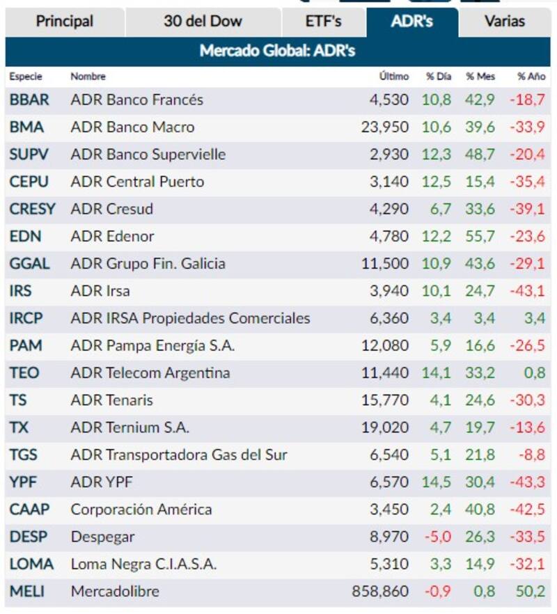 Fuertes subas de las acciones locales en Wall Street. Fuente: Rava.