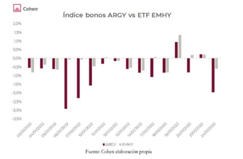 Finalmente, en cuanto al impacto en los bonos, desde Cohen afirmaron que, en lo que va de enero mantienen un comportamiento de "high beta asimétrico"