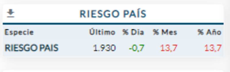 Debido a la fuerte baja, el riesgo país alcanzó nuevos máximos esta semana e inicia el miércoles en 1930 puntos.