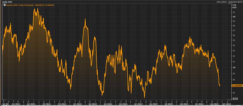 En cuanto a las acciones, el ETF de Brasil pierde 22% en lo que va del año.