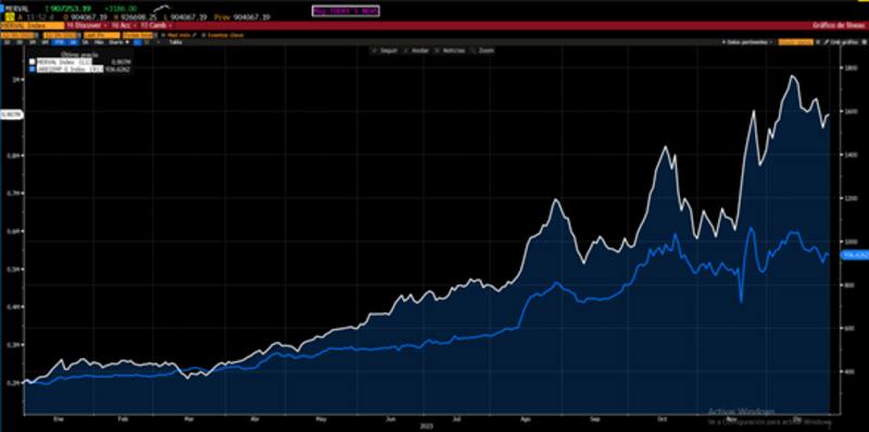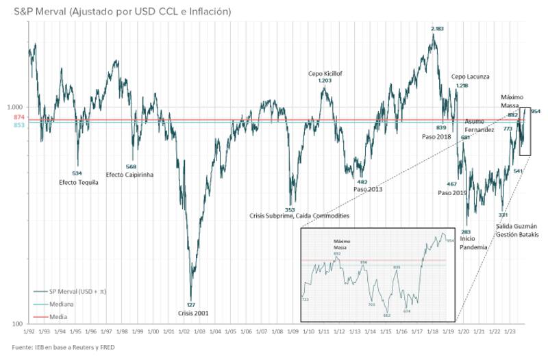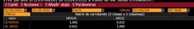 Sin embargo, agregó que esta relación ha cambiado en los últimos días, en donde el Merval medido al CCL mostró cierta retracción desde sus máximos de 2023.