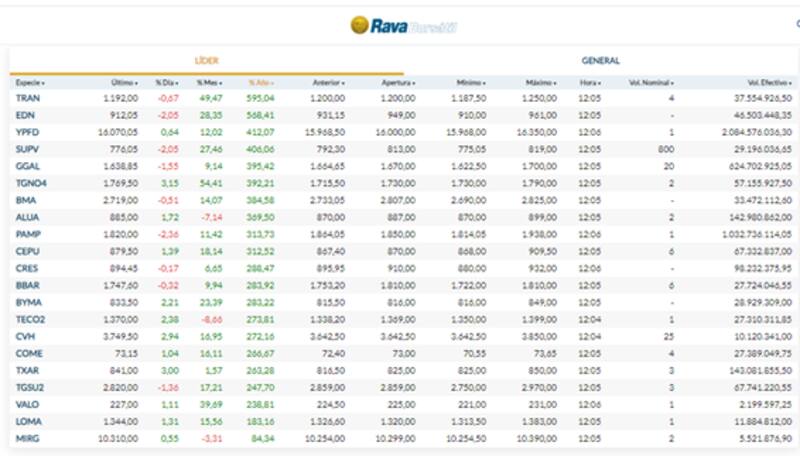 En el ranking de acciones que más subieron en el año dentro del panel líder, se destacan las acciones de Transener, que suben 595%, seguida por Edenor, que gana 568%.