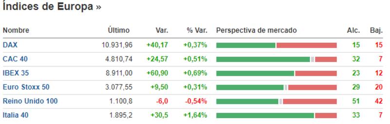 Por su parte, el Ibex gana un 0,69% en el índice Ibex 35, hasta 8.911 puntos.