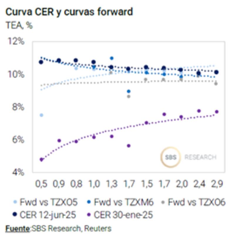"Ambas curvas hoy se encuentran invertidas pero no por un riesgo de pago, sino todo lo contrario. El mercado espera una menor nominalidad y una mayor normalización de la economía en el mediano plazo", explicó.