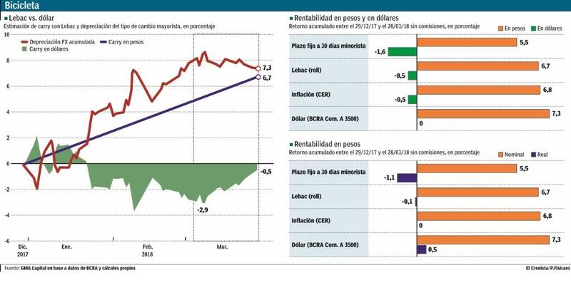 "Salvo por algunas ruedas de enero, la estrategia de invertir en pesos en Lebac sin cobertura cambiaria estuvo en terreno negativo casi todo el primer trimestre", dijo Nery Persichini, gerente de Inversiones de GMA Capital.