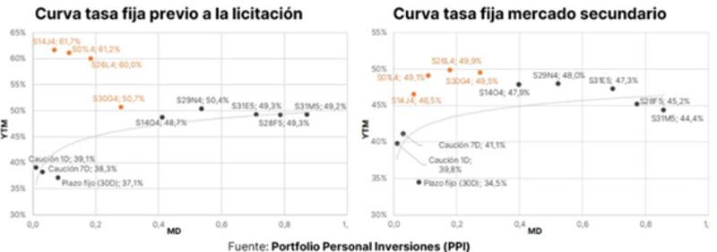 "La compresión de tasas en las Lecap nos daba un indicio de que habría liquidez ociosa buscando rendimientos en el mercado secundario, por lo que es lógico observar esta dinámica en los instrumentos de tasa fija de corto plazo. Teniendo en cuenta la curva de instrumentos a tasa fija, creemos que todavía existe un tímido upside relativo en estas letras de corto plazo", dijeron.