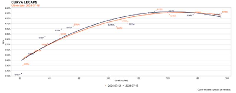 La curva de Lecaps se viene acomodando su pendiente, subiendo las cortas y bajando las más largas.